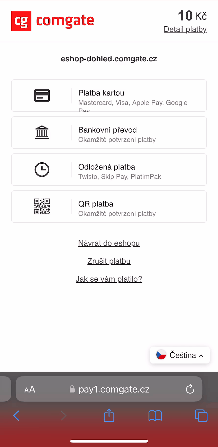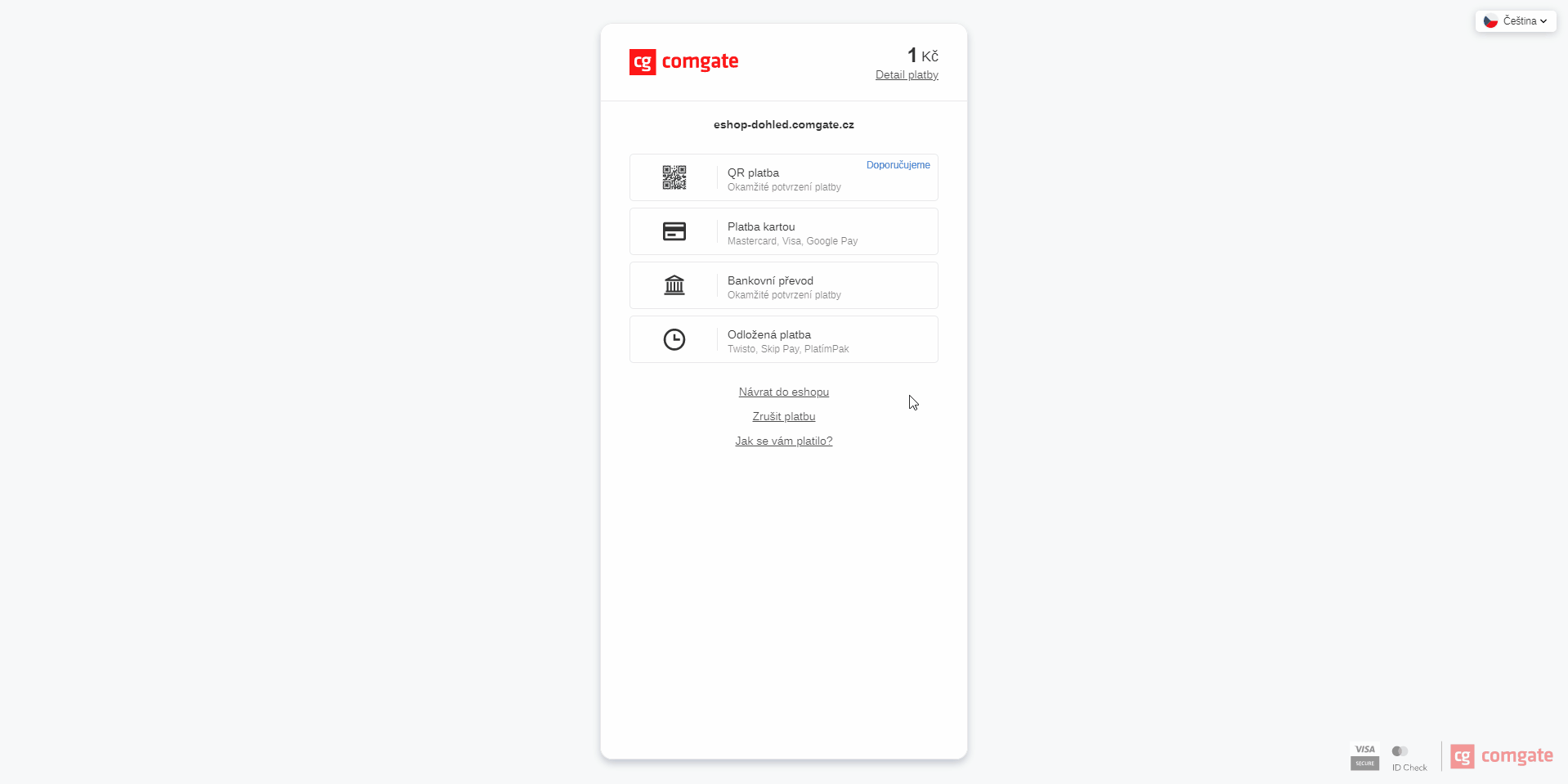 - Po zaplacení dojde k přesměrování zákazníka zpět do e-shopu.